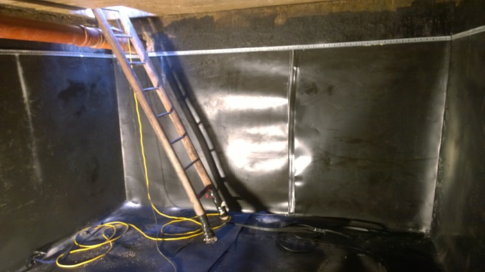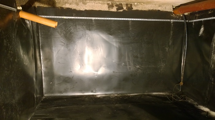 Kunden berichten immer wieder dass sie teure Anstriche aufgebracht haben/aufbringen haben lassen, diese jedoch schon nach ein paar Jahren wieder undicht wurden – sich wieder lösten. Das beruht in erster Linie darauf, dass das Gemäuer hier unten niemals austrocknet, die Feuchtigkeit ständig auch von außen nachdrückt und sich der Anstrich somit wieder löst. Unser System ist nicht mit dem Untergrund verbunden, wie etwa herkömmliche Abdichtungstechniken in diesem Bereich (Anstriche, Polyester, …). Deshalb sind etwaige auftretende Bewegungen, Risse im Untergrund oder feuchte Wände, kein Problem. Die Abdichtung ist ein eigenes Opjekt welches nur oben mittels Anbindungsschienen befestigt wird.